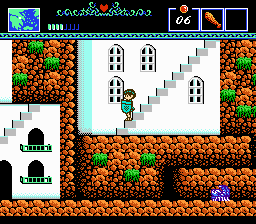 Les graphismes sont assez identiques à Faxanadu, ou Zelda 2 dans les scènes de plate forme. On a parfois du mal à distinguer son perso d'un décor, mais sincèrement c'est minime, et j'aime beaucoup ces couleurs, cet univers, ces graphismes quoi...