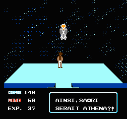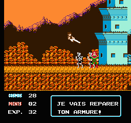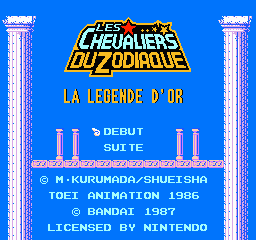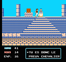 Sorti une année après le cousin Dragon Ball, ce premier épisode d'une série qui en comptera deux sur NES porte le doux sobriquet de "La Légende d'Or" dans la VF, ce qui n'a pas grand-chose à voir avec le contenu, mais bon. Mais fait plus intéressant, nous avons sous nos yeux ébahis un jeu 100% français dans le texte ! Bonheur, joie, Noël. Comme Dragon Ball d'ailleurs, merci Bandai de penser aux petits n'enfants qui ne savent pas lire l'anglais (et le japonais non plus d'ailleurs puisque ces titres ont fait le bond direct Japon-France). Dommage de les avoir pris pour des demeurés avec cette belle traduction bien foireuse, mais le cœur y était quand même.