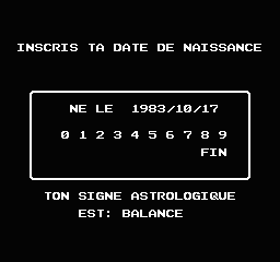 Ah tiens, il y a un petit détail sympa dès le début du jeu puisqu'il faut saisir sa date de naissance. D'une part c'est marrant car en fonction du signe zodiacal indiqué les statistiques de départ seront différentes, d'autre part c'est encore plus marrant puisque certains seront clairement défavorisés dès le début et en chieront deux fois plus. Eh oui, le tiers monde existe même chez les Chevaliers du Zodiaque.