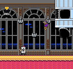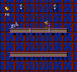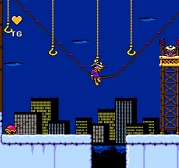 En plus d'être beau, il est (heureusement) maniable. Le canard répond au doigt et à l'œil. Plusieurs actions possibles, avec de nombreuses animations à la clé. Genre se baisser (la tête de Darkwing lorsqu'il est baissé et qu'il tire, du grand art !), sauter, s'accrocher, sautiller dans tous les sens, sortir son pistolet (dans le genre pistolet à bouchon, on a rarement fait mieux). Et le tout sans ramer. Ouf ! On a une pensée émue pour l'ami Bugs Bunny Birthday Blowout et son célèbre moteur de jeu non finalisé qui rame. Là c'est nickel.