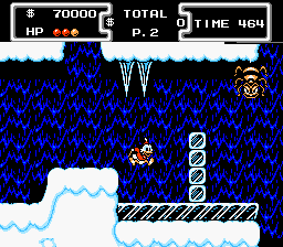 Une bombe et une manette NES, visible dans les crédits à à la fin du jeu. Fin du jeu qui d'ailleurs propose une fin alternative amusante, et compliquée à réaliser. Il faut que vous terminiez le jeu avec un multiple de 3 000 000$. Prenez quelques coups pendant le combat, et récupérez de la vie en appuyant sur Select (ce qui vous coûte 3 000 000$ à chaque fois). Faites-le jusqu'à ce que vous n'ayez plus rien comme monnaie. Grimpez alors à la corde, arrivez avant votre vieil ennemi, et regardez les crédits ! Picsou ruiné, la malchance s'abat sur lui, rideau.