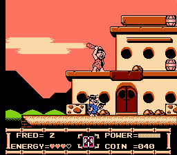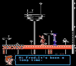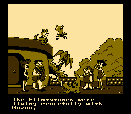 Avec joie, bonheur et bière bien fraîche, le jeu nous apporte avec finesse l'univers de pacotille transpirant le rêve américain des années 50. Les dinosaures et les complets en peau de tigre en plus. Oui car comme beaucoup de jeux sortis dans les années 90 sur la vieille dame grisâtre, le jeu se démène comme un petit diable pour nous en coller plein les mirettes. La NES vit ses derniers jours et fait de son mieux pour sortir par la grande porte par laquelle la Super Nintendo pointe le bout de ses pixels. Le jeu est donc beau, coloré et chaleureux. L'univers de la série est fidèlement représenté. On se surprendrait presque à pousser un petit "yabadabadou" de temps à autre. Presque car vos proches n'attendent que ce genre de dérapage pour vous placer sous tutelle.