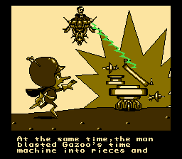 Hanna-Barbera oblige, on ne donne pas dans l'exactitude historique et on cède volontiers au recyclage à tout va. Ce n'est plus une série de clichés mais toute une soirée diapositives. Inutile de s'attendre à du level design dégoulinant d'originalité, vous allez avoir droit aux grands classiques : de la mer, de la montage, de la jungle et même un château hanté avec vampire fourni. Tenez, vous aurez même droit à une balade au japon préhistorique. De la part d'un jeu réalisé au pays du Soleil Levant pour une licence américaine, c'est un minimum. Même tarifs pour les fins de niveaux : du boss à châtier pour récupérer la précieuse pièce de métal constituant le vaisseau de la bestiole dont le nom pourrait parfaitement être une marque de soda.