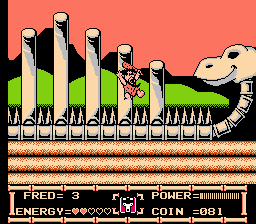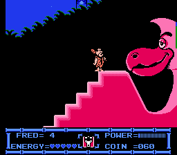 Ce serait mensonge éhonté de dire que le jeu est aussi bien animé que la série télévisée. Non, car ladite série était animée à la truelle, conforme au règlement des studios prônant l'économie de moyen autant que faire se peut. Souvenez-vous, ces personnages taillés à la serpette, ces courses poursuites avec un arrière-plan qui tournait en boucle toutes les 1,5s, ces dessins réutilisés d'un épisode à l'autre en espérant que le public ne fera pas attention et ces scénarios qui n'étaient où chacun n'était qu'un calque du précédent. Et pourtant, on l'aime cette série, son anachronisme kitsch et ces dinosaures rigolos. Et la NES, du haut de ses modestes 8 petits bits, lui rend un parfait hommage.
