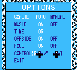 Donc en option vous aurez le choix de contrôler votre gardien en manuel (merde, mais c'est une bonne option ça !!), de choisir ou pas d'appliquer le hors-jeu et les fautes, de décider de la durée d'une mi-temps et de… ? Mais c'est quoi ça ? Rhôôôôô, mais comment se fait-ce ? La dernière ligne d'option est un miracle. Un don du ciel. Un myosotis poussé sur une diarrhée de caniche.Une jeune vierge dans un film porno amateur sur les couples de plus de 50 ans… Bref une sacrément bonne chose. Qui donne l'espérance en un monde meilleur. Carrément. Sous la simple impulsion de votre croix directionnelle vous aller pouvoir choisir de redresser ce PUTAIN de terrain en vue isométrique. Avant quand vous alliez vers le haut, le joueur courrait vers le haut du terrain, c'est à dire en diagonale haut-droite de l'écran, ce qui est d'une frustration exaspérante. Fini. Vous pouvez désormais dire à votre joueur que quand vos petits doigts appuie sur la flèche du haut, IL VA EN HAUT ! Ca a l'air de rien là comme ça, mais ça change la vie. Comme quand vous enlevez le petit caillou coincé sous votre gros orteil depuis le début de la rando, c'est à dire 8 km.