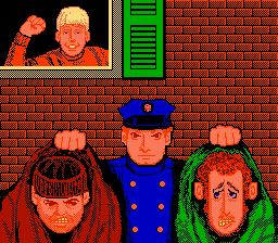 Et rien ne nous indique ce que l'on doit faire dans ce cauchemar des yeux. Sur NES Pas, nous ne sommes pas faits du bois dont on fait les connards. Alors je vais vous le dire, amis lecteurs : il va falloir survivre pendant 20 minutes en temps réel aux assauts répétés des deux voleurs du film. Tout simplement.