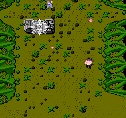 A ce propos, l'écriture de cette critique m'a permis d'apprendre que le titre est directement tiré du scénario qui raconte que vous êtes en mission pour infiltrer le village critique d'Ikari. Infiltration lourde donc, pas question de jouer la tarlouze à la Sam Fisher hein ! Ce sera les couilles sur la crosse et la sueur au front que vous gagnerez âprement du terrain jusqu'à la victoire finale, jonglant sans cesse entre le niveau dangereusement bas de vos munitions et la pénurie de grenades qui feront de vous de délicats pigeons d'argiles dans une compétition internationale de ball-trap face aux hélicos adverses.