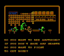 Ensuite, le jeu s'annonce techniquement fantastique, tel l'atteste sur la boite l'étiquette « featuring voice and morse code ». Et en effet, dès la scène d'introduction le code morse est utilisé. Pour chaque lettre de chaque mot de chaque phrase, la console bip en morse. Le texte de 23 mots met 1 minute et 25 secondes à s'afficher et vous avez perdu 8% de vos capacités auditives. Pour les voix digitalisées, encore une fois c'est tout à fait vrai. Le héros parle, crie quand il meurt et de manière bien plus variée que Monopoly sur Nes (qui lui aussi possède l'eye-catcher « Avec voix digitalisées »). Cependant, il existe un petit problème de restitution : on ne comprend rien. Je ne suis pas une star en anglais, mais la c'est de la bouillie. Je suis d'ailleurs prêt à filer une cartouche de « Lee's Trevino's Fighting golf » au premier qui me fera la traduction des voix.