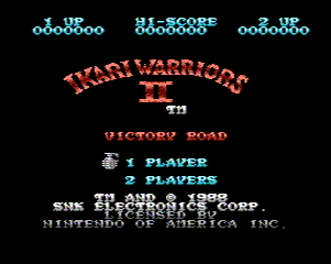 La société SNK, que tout le monde connait au moins pour Metal Slug et King Of Fighters a eu aussi quelques problèmes d'identité comportementale à ses débuts. Avant de créer le monstre de puissance que fut la NeoGeo, il fallait bien vivre, et SNK décida de porter son jeu d'arcade nommé Ikari Warrior sur la console phare du moment : la NES. Je ne vous la joue pas suspens, allez donc lire la critique sur le site pour comprendre l'étendue des dégâts. Ce qu'on ne sait pas forcément, c'est qu'ils ont osé sortir une suite : Ikari Warriors 2 – Victory Road. Et rien qu'à observer la boite du jeu, on sait qu'on est parti pour un grand moment vidéo ludique.