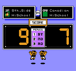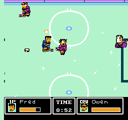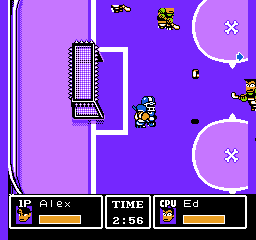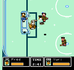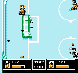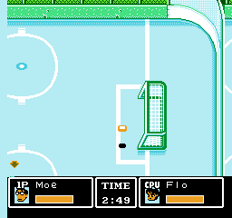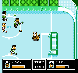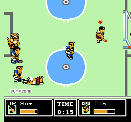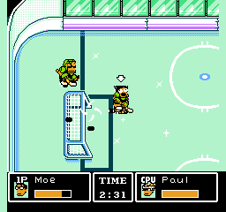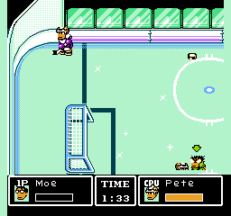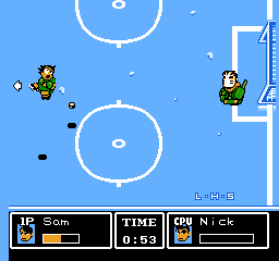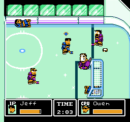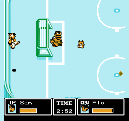 Tu noteras de suite que ce jeu ne respecte pas les règles du hockey. Il n'y a en effet que trois joueurs de champ et un gardien par équipe, ce qui est contraire au sport. Remarque, je ne suis pas persuadé que les coups bas et les tirs spéciaux soient réglementaires.
