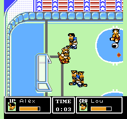 Vois-tu, ce jeu fait partie de la même série que le célèbre Nintendo World Cup. Oui, tu as tout juste, il s'agit bien de ce jeu de foot improbable où l'on peut tabasser ses adversaires et réaliser des super tirs à foison. Ces deux jeux sont donc membres de la série des « Kunio-kun », du nom d'un voyou qui n'hésitera pas à faire valoir ses poings pour avancer. Et il a ça dans le cœur le petit Kunio puisqu'il est touche à tout.