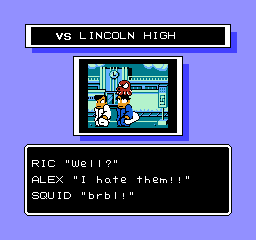 Bon, il y a une nuance puisque la traduction anglaise est un peu bancale puisque l'action n'est censée se passer qu'au Japon. Mais reconnais toutefois que cette version est plus trépidante que l'autre. Et puis Kunio n'est pas un blaireau qui se contentera de gagner le tournoi lycéen de sa ville.