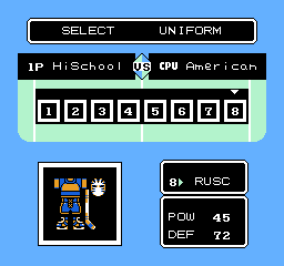 Et tout cela continue jusqu'au grand final, face aux champions Canadiens. Tout repose sur ce dernier match, pense à bien te préparer en commençant par ton équipement. J'allais justement oublier de t'en parler, mais chaque fois que tu vaincs une équipe, tu auras l'occasion de revêtir sa tenue. Chaque tenue aura des statistiques chiffrées différentes, mais permettra parfois même de réaliser des techniques spéciales en cours de match.