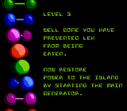 Le leitmotiv du jeu : chercher des oeufs. Oui, présenté comme ça, on a du mal à sentir le souffle chaud de l'aventure nous caresser le cou. C'est un schéma commun à tous les niveaux : une certaine quantité d'œufs d'une bestiole quelconque (je dirais pour ma part un Conarausore pour laisser trainer ses ovules un peu partout comme ça) est disséminée sur votre parcours. Les collecter fera de vous l'heureux possesseur d'une carte d'accès permettant d'entrer dans les bâtiments. Je ne sais pas trop : un fan de piperade, un programmateur né d'une fécondation in vitro, un sombre symbolisme crypto-païen. Des œufs qui donnent des cartes d'accès. Soit. Une sorte de Kinder Surprise nano-technologique nous dirons. Cette quête est d'ailleurs l'axe principal : on récolte des œufs, la carte ouvre une nouvelle zone, dans laquelle se trouvent des œufs, GOTO 10. Le jeu tente toutefois de rompre la linéarité lors de certains passages. Comme celui où vous devrez récupérer des bombes pour allez faire sauter des cavernes ou cet autre dans lequel vous aurez à activer des terminaux informatiques dans un ordre précis. Voire un poil artificiel mais pas déplaisant. Ce qui n'est pas le cas d'une abominable séquence (absente du film mais présente dans le livre, cocasse) : la séquence du canot pneumatique dont la jouabilité est à deux doigts du procès en malfaçon.