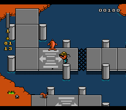 Et dès le deuxième niveau j'affronte ma nemesis : putain de saloperie à dents, je vais te bourrer raz-la-gueule de boulettes calibre 12. Je vais rétablir l'ordre biologique des choses, tu vas voir. Tu as disparu de la chaine alimentaire depuis 65 millions d'années et mon espèce a inventé l'horloge pointeuse, la littérature et les congés payés. C'est l'heure de ma psychanalyse à base de plomb fondu. Ce petit passage catharsique me permet d'attirer votre attention sur une des pires inventions de l'histoire du jeu vidéo, au coude à coude avec la Jaguar : le joueur à protéger contrôlé par l'ordinateur. Une source de prescription de Xanax à lui tout seul. Le gag ici est que vous devez non seulement protéger votre croupion mais également ce quart de gourde d'Alex qui, ô riante subtilité, ne vous suit pas directement mais de façon aléatoire (et revenir) offrant ainsi des brouettes d'occasions de garnir le gosier de la charmante créature sus-nommée. Foutreburne.