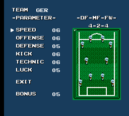 Au niveau des modes de jeu on est déjà plus gâtés. Tournoi, jeu seul ou à deux et séances de pénos, le tout avec un choix de 24 équipes. La différenciation se fait au niveau de la couleur du maillot hein, rien de plus (n'oubliez pas le style graphique sus cité). Si vous voulez jouer avec des camerounais blancs en maillot gris contre des japonais blancs eux aussi (dingue les dégâts de la colonisation…) en maillot jaune c'est l'occasion ou jamais. Beaucoup de modes pour pas grand chose en fait, le gameplay étant visiblement parti en vacances ou voir un ami.