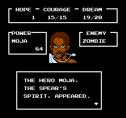 Transition idéale pour parler du point positif –renversement de situation !–, à savoir le système de combat. Intrinsèquement il n'a pas grand-chose de différent comparé à la masse : du tour par tour dans la plus grande tradition japonaise, chacun porte ses coups et le plus faible meurt en premier. Mais ici, la subtilité vient du fait que notre personnage peut invoquer des esprits afin de se battre à ses côtés ! Et ça, c'est assez ouf car assez inattendu dans cet océan conventionnel.