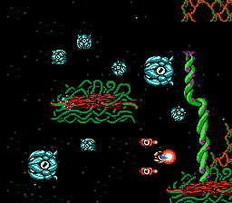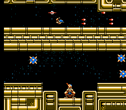 Et c'est ça tout du long. Alors c'est vrai que vous allez prendre super cher. Oui, moi ça va, mais nous ne sommes pas du même sang, je vous rappelle que je joue à une main, ah ah… La difficulté est bien là car bêtement nous ne sommes pas habitués à ces innovations. Mais on prend son pied comme rarement dans un jeu NES. Les niveaux s'enchainent comme un mix de compagnie cweole, et les boss ne sont que les cerises sur le tableau. Enfin je crois.