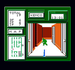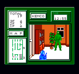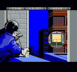 Oui, sur papier c'est amusant, et ça l'est. On commence avec les snippers à positionner. On dirige donc un type, au nom complètement bidon. Oui, je le note car tous les noms dans ce jeu puent la défaite. On a ainsi l'ami Mike, Ronald, Kemco, Steve et autre Jumbo. Rien que ça, je suis mort de rire. Ils apparaissent aux coins de rue, et il faut les emmener jusqu'à leur planque. On sort du trou, les mires lumineuses se dirigent dans tous les sens, et un passage à la mire et c'est la mitraille, et la mort, vraisemblablement. Oui, vraisemblablement car je n'arrive pas à pleurer en faisant par erreur abattre un de mes hommes. On voit la carte des opérations, avec Mike qui s'envolent vers des cieux meilleurs, en ange. C'est tellement poilant que je ne me concentre pas, et que je plante un autre snipper, de rire. J'adore ce passage. On avance donc dans la rue, en évitant les mires de lumières. Si une mire arrive de manière inévitable sur Jumbo, il a plusieurs possibilités. Soit il saute dans un buisson (avec une animation exceptionnelle), soit il se cache derrière un pilier, soit il rampe... La panoplie des coups est large, et vraiment fun. J'aime à faire ramper un de mes hommes, et à l'amener vicieusement en plein milieu d'une mire. Il passe ainsi instantanément du stade de rampant au stade de mourant. Dans une animation tellement comique...