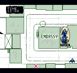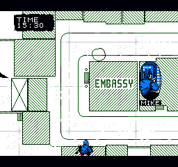 Comme son nom l'indique pour nos ami(e)s anglophones, Rescue the Embassy est un jeu où l'on doit sauver l'ambassade. Oui, elle est sous le contrôle de gros vilains. Mais des vrais de vrais, avec des armes et tout. La petite animation à l'allumage de la console nous le rappelle. Ils sont arrivés avec leur voiture, ils ont sautillé jusqu'à la porte de l'ambassade, et dans la seconde les policiers sont arrivés pour sauver l'ambassade. Les policiers, c'est vous. Vous allez devoir prendre le contrôle des opérations, en dirigeant des soldats d'élite, taillés pour la sueur et le sang, survivant dans la jungle 6 mois en dévorant leurs propres excréments. Mon dieu, j'en frétille des ovaires !
