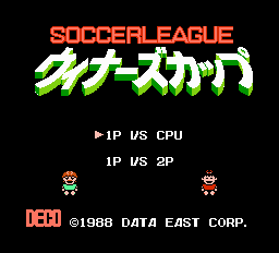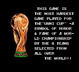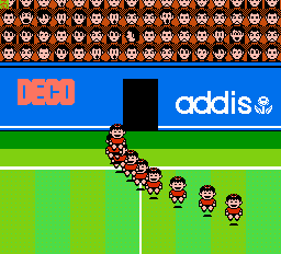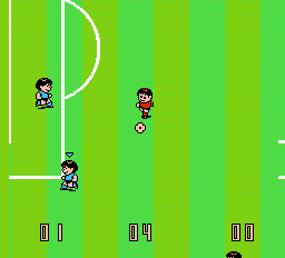 Dans ma divine quête du jeu de la baballe au pied ultime sur NES, Ecstazy m'a conseillé d'essayer celui-ci. D'une part parce que je le lui ai demandé, d'autre part parce que c'est une buse en jeu de foot. Ou parce qu'il aime pas ça. Peut être même les deux, qui sait.