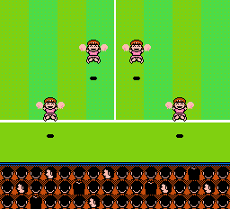 Côté graphisme c'est vraiment sympa. Pour de la NES s'entend, toute chose étant relative depuis Albert. Les petits bonshommes courent dans tous les sens, et on sent qu'ils ont du plaisir à batifoler ainsi sous les impulsions de votre pad. Du tout bon.