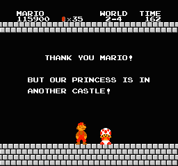 Ah mon dieu, la vie dans le royaume champignon est en péril : le roi Bowser Koopa a enlevé la Princesse Toadstool, aimée de tous, et l'a jeté dans un cachot. C'est la où vous intervenez. Vous êtes Mario, un gros plombier mangeur de pasta al dente. Ok. L'imagination des gars de chez Nintendo nous émerveillera toujours mais de la a créer ce héros là il y a une marge, et de là à en faire son héros culte, il y a une marche ! Vous arrivez donc là (genre "hop hop hop mais qui voilà ?"). Si vous la sauvez, elle vous cuisinera sûrement des boulettes de viande dont elle seule a le secret, et si vous échouez, vous serez condamné à jouer dans un film de merde où le vilain Bowser sera un acteur hyper connu avec des pics sur la tronche (comment ça? Ca existe ?). Vous relevez le défi ?