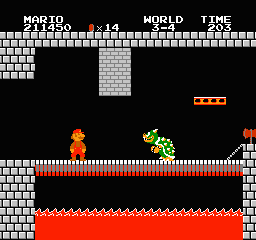 On doit pouvoir résumer tout ça dans un plus pur style "moi tarzan toi jane". Ca donne : Toi Mario. Ton frère Luigi. Sauver la princesse. Cool :) Le jeu se compose de 8 niveaux eux même découpés en 4 sous niveaux. on peut si l'on connaît les raccourcis zapper ("warp" dans le jeu) des niveaux, d'où un précieux gain de temps. Vous parcourrez d'innombrables niveaux aux décors (un peu...) variés, genre de la glace (qui ne glisse pas : culte !), des plates-formes qui bougent dans tous les sens, et ennemis que seul un mec bourré après 4 jours de Thunderdome et encore sous ecstazy (ah ah je sais c'est moi c'est ça qui est fort) peut rater. A la fin de chaque niveau vous combattez Bowser mais en fait non ! Vous avez beau le tuer, vous vous apercevez à chaque fois que ce n'est qu'un imposteur. le vrai Bowser vous attend à la fin du dernier niveau (8.4) et pas avant. Damned. Dès que vous le tuez, le jeu recommence, avec des ennemis plus durs, et ce jusqu'à ce que vous craquiez. Personnellement je ne l'ai jamais fini plus de deux fois de suite, j'ai du temps à perdre mais quand même.