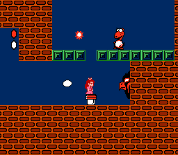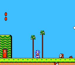 Mario Apparemment dort tout au long de cet épisode, et imagine toute l'histoire de Super Mario Bros 2. Il voit une porte vers quelque part (ouah c'est d'un précis...) et part ensuite à une pic nic party où il retrouve cette même porte. Il l'ouvre et tombe dedans. Et il tombe sur quoi ? Subcon c'est quoi ? Pourquoi les ennemis sont complètement différent de tous les Mario ? Ok j'ai dis que je n'en parlais pas que je jouais le mec pas au courant. Vous traversez les différents niveaux, en choisissant au départ avec qui vous suivrez l'aventure sur ce niveau. Vous avez le choix entre Mario, Luigi, Toad et la Princesse. Ils possèdent tous certaines aptitudes différentes. Ainsi on choisira la Princesse (qui vole pendant un certain temps) pour des passages où les sauts sont un peu tendus (il y a peu de passage de ce genre dans le jeu...), ou bien on prendra Toad (qui creuse vite) pour le monde du sable ou il faut creuser vite sous peine de s'agacer relativement vite. On traverse donc des paysages variés, comme la neige, le désert, pour arriver au final à Wart, le boss final.