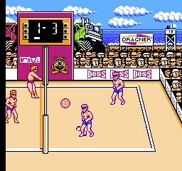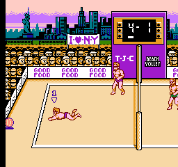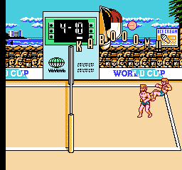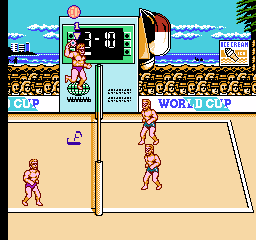 Mais ici point de personnages à grosse tête et à gros yeux, non, juste des sprites body buildés plus ou moins bronzés et prêts à en découdre sur un terrain de beach volley, un peu partout dans le monde, mais surtout aux USA, parce qu'à cette époque, les USA c'était un peu over the top of le monde, quand même.