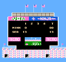 Je termine avec mon petit cadeau Bonux chéri, le trivia qui fait la différence. Le Super Bowl est un peu au sport ce qu'est TF1 à la télévision, un superbe encart publicitaire pour petits et grands. Plein d'opportunisme devant une telle aubaine, Tecmo saisit la perche en collant sur le panneau d'affichage du score le titre de deux jeux maison : Rygar, bien isntallé dans le catalogue NES, ainsi qu'un sibyllin "Ninja" derrière lequel se cache