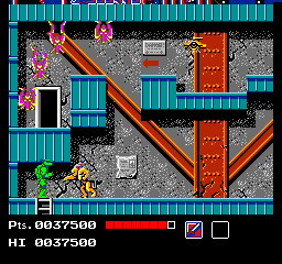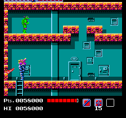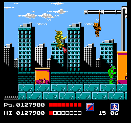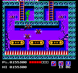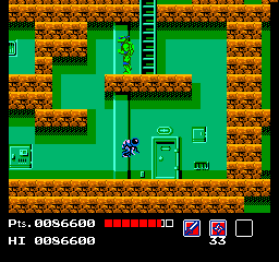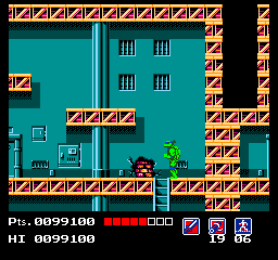 Tout de même, rien que parce que c'est le jeu qui m'a fait entrer dans l'ère 8-bits et qui a éveillé ma conscience au jeu vidéo, j'ai pour lui ce petit plus sentimental et complètement subjectif. Mais il faut bien le reconnaître : on a un jeu moyen. Qui claque, par certains aspects (la musique des "gros" boss est une pure tuerie), et qui pique, par d'autres. Des bugs complètement cons (la technique pour battre le second boss, une honte), des passages à se flinguer (la désactivation des bombes sous l'eau, ha ha ha combien d'entre vous ont cru mourir à ce moment là ?), une map à vous rendre fou, surtout sur un jeu sans sauvegardes ni passwords (huhu le dernier niveau et ses réseaux de galeries, ou le niveau 3 et ses immeubles identiques à répétition)... Sans oublier les trucs qui sont soit des bugs, soit des features, à vous de voir.