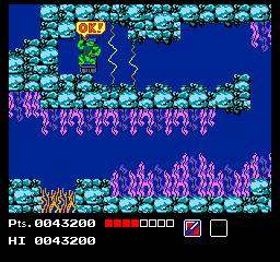 D'autre part on a les vieux briscards maniérés et un brin réacs, qui composent la majorité de nos lecteurs et chroniqueurs, qui dardent leur intransigeance au travers des écharpes de la nostalgie. Et ceux-là vont hurler. Hurler parce que ce jeu a quand même une chiée de défauts. Premièrement, sa difficulté intrinsèque : pas de vie, ça veut dire que toute mort de tortue sera (à peu près) définitive. Ah. Ensuite, des graphismes un souffrant du syndrôme "je détaille à mort". Sur une console comme la Nes, ça donne un bel exemple d'Art Séquentiel complètement raté (oui, le terme d'Art Séquentiel est inapproprié mais je vous merde). C'est fouilli. En même temps, on manie Raphaël, pas Andy Warhol hein. Mais le pire est à venir : une maniabilité de savonette dans les douches de Fleury-Mérogis, oui, ce même genre de glissando qui se termine en fist anal. Pour faire simple : les sauts sont une plaie. Les tortues peuvent s'envoler sur tout l'écran, chouette, mais non, c'est comme essayer de marquer un panier avec un ballon de baudruche, vous voyez ? Donc quand vous vous enfilerez les sauts à la chaîne au-dessus d'une eau mortelle, vous comprendrez votre douleur. Puisque, je vous le rappelle, toute mort sera définitive, ah ha ha, maxima merdam et bordello alla chiotta. C'est un tort, et je vous rappelle le tort tue. Humour !