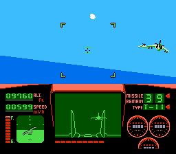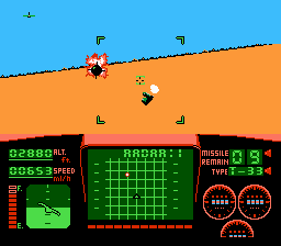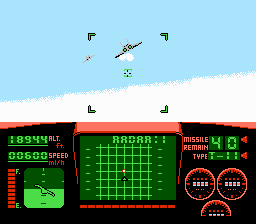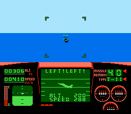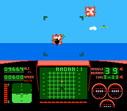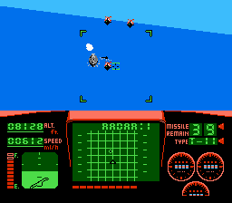 Niveau maniabilité c'est assez moyen. L'avion vire de bord assez violemment, et est assez paraplégique dans l'ensemble. Pas de looping de folie, pas de vrille. On serait avec un TGV volant cela ferait le même effet… On tire de base avec une pauvre mitraillette, qui s'avère avoir un rythme assez faible, par chance les munitions sont illimitées. On peut aussi utiliser des missiles à tête chercheuse, à teneur en intelligence proche du 0. Ils visent comme les genoux de ma grand-mère. La musique est absente, à part le thème du début. Vous serez seulement accompagné de votre mitraillette et de votre bruit de moteur, les deux particulièrement agaçant.
