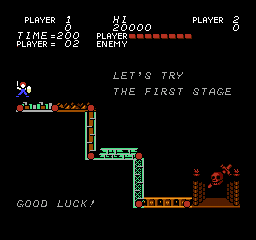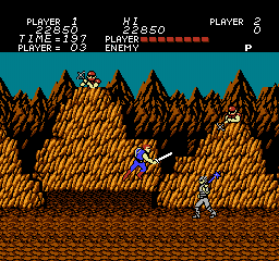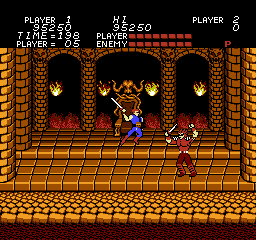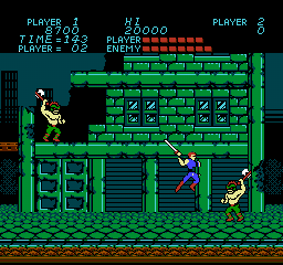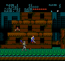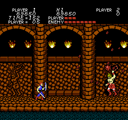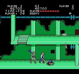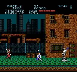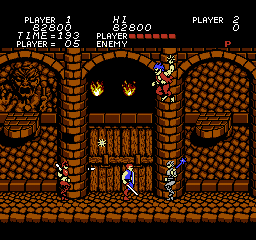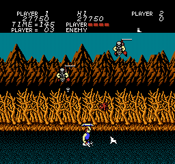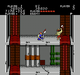 Ce jeu qui est une transposition d'une borde d'arcade de CAPCOM et cela se remarque immédiatement vu qu'il se révèle être typique du genre action qui régnait à cette époque, c'est-à-dire un pur concentré de sauvagerie sans aucun temps-mort. Ainsi, après un écran titre des plus basiques (vous proposant de jouer seul, à deux, ou en mode versus) et une présentation des six niveaux que vous aurez à traverser et dont la structure en escalier est ma foi fort sympathique, vous serez directement catapulté au milieu de la zone de guerre ou vous cerneront divers ennemis plus vicieux les uns que les autres. Ces derniers ne reculeront devant aucune bassesse, vous agressant à gauche, à droite, d'en haut… si les soldats qui arrivent par vagues de deux se révèlent assez basiques dans leurs attaques, les sergents sont quant à eux une vraie plaie vu qu'ils vous lanceront divers couteaux mais également des projectiles magiques vous privant temporairement de votre armement si vous les parez avec votre bouclier ! Les ennemis surgiront parfois des égouts, parfois des fenêtres, parfois même de nulle part (mais ça c'est un bug graphique, ne paniquez pas). Divers boss vous attendront enfin de pied ferme, non seulement à la fin de chaque niveau, mais également parfois à mi-parcours… Les salauds, ils ont osé!