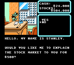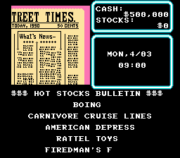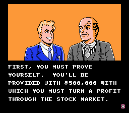 Car Wall Street Kid est un simulateur d'ennui profond. On pourrait de prime abord être appâté par l'évocation de Wall Street. Le rêve américain, les pluies de dollars, les jolies filles et les millions. L'effet wow est à son maximum. Et puis on note l'improbable « Kid » accolé, qui nous rappelle que nous sommes sur Nintendo, et qu'on laisser tomber les saladiers de coke et se rabattre sur le lait fraise, et qu'il reste du chocolat c'est cool.