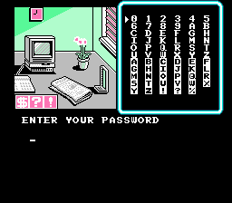 Le fameux écran des mots de passe. Tellement pratique à utiliser sur une bonne vieille télévision CRT bien baveuse :