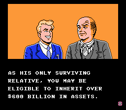 Au lancement du jeu, une séquence d'introduction. Votre avocat vous explique que pas de chance votre oncle méconnu est mort, et que vous êtes son seul héritier. Plutôt triste pour le commun des mortels, mais non, pas pour vous, qui êtes de la race des héros, des winners, de ceux qui ne reculent jamais. C'est donc avec un épouvantable et narquois sourire que vous accueillerez la nouvelle, comme pour dire « ah ah vieille bique, je savais que je t'aurais. A moi les petites pépés jolies »