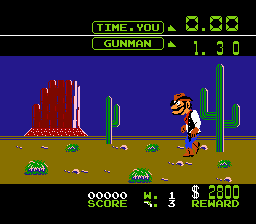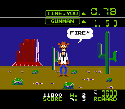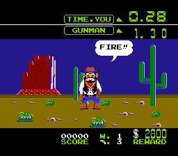 Une vie est perdue chaque fois que le bandit tire le premier ou que l'on tire avant le temps réglementaire. Autant le dire de suite, il est très compliqué de perdre dans ce mode tant que l'on vise bien. Le temps de réaction ne va pas en dessous de quatre dixièmes, ce qui reste tout de même plutôt élevé. D'autant plus que contrairement à ce que l'on pourrait penser, la cible n'est pas définie par la forme du bandit, mais prend tout l'écran. On peut donc tirer partout sans manquer sa cible. Damned.