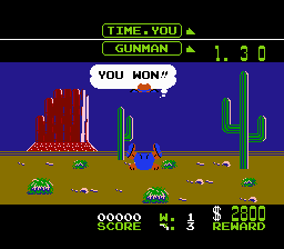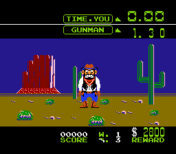 Duck Hunt. On pourrait bien s'en contenter, mais dans le cas présent on veut ressembler à Clint Eastwood ou John Wayne, pas à Jean Saint-Josse ou Frédéric Nihous. Dans ce cas, il y a aussi Wild Gunman. Autant dire que le profil colle bien mieux puisqu'il faudra jouer de la gâchette pour éradiquer les sales bandits de l'ouest.