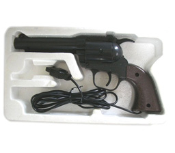 Où se situe donc l'arnaque ? Wild Gunman est pourtant chronologiquement le premier jeu au Zapper sorti sur la console. D'ailleurs, il est bon de préciser que le pistolet fourni lors de sa sortie au Japon n'avait rien à voir avec celui que nous connaissons, pauvres occidentaux. Il est encore temps de regarder ce Zapper orange Mako Moulage et de constater que l'homme viril a finalement perdu beaucoup de son influence. Désolé, ce ne sera finalement pas aujourd'hui que vous irez empêcher le hold-up de la banque locale.
