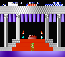 Les palais ne sont par contre pas très nombreux (il y en a 6, au bout desquels vous récupérerez un cristal qui permettra de supprimer la barrière magnétique fermant l'accès à l'ultime château), mais possèdent l'immense avantage de se dérouler dans une ambiance exceptionnellement prenante desservie par un thème musical dantesque et plus que mythique. On a carrément affaire à un air encore plus prenant que le classique « overworld theme », qui bénéficiera plus tard d'un excellent remix dans Super Smash Bros. Melee. D'une manière générale, la bande son de Zelda 2 est très soignée, bien que le son NES ne soit pas forcément la panacée en matière de son cartouche.