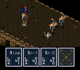 Heureusement c'est pas trop moche. On évite le dégueuli de sprites grossièrement détourés en palette criarde, merci mon Dieu. On souffre comme toujours d'un côté répétitif un peu gonflant mais sans plus, les monstres ont de bonnes têtes et nos héros - que l'on voit toujours de dos, c'est agaçant - ressemblent à quelque chose, en vue de trois-quart, ce qui leur donne un peu de relief par rapport à des vues très "à plat" dans d'autres jeux. Les oreilles ne crieront pas au scandale, c'est presque mieux que l'épisode 2, avec toujours 2-3 musiques très chouettes mais également le manque de 2-3 thêmes qui colleraient aux oreilles. Bien mais pas top.