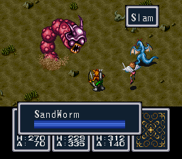 L'idée des combats aléatoires ne date pas d'hier et est plutôt bien gérée dans l'absolu par Capcom. Dans les Final Fantasy de chez Square, souvent, les combats aléatoires ne le sont pas : tous les X déplacements que vous effectuez, vous allez rencontrer quelqu'un, c'est écrit, fatal, inévitable. Dans les Breath of Fire par contre c'est vraiment aléatoire, vous avez une sorte de tirage au sort à chaque pas que vous faites. Ca a l'air bien hein ? Sauf qu'on ne voit pas la différence à moins de faire le guignol sur émulateur avec des saves states.