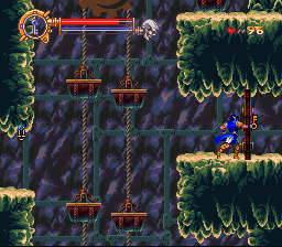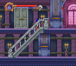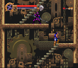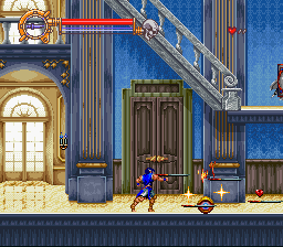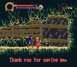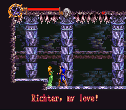 Une autre chose vient illuminer tout ceci. Une étoile dans un ciel rouge sang. Une lueur d'espoir, annonciatrice d'une révolution pour la suite de la série. Comme dit plus haut, il y a des chemins et fins multiples. Oui, il y a de vrais stages cachés (et pas une pauvre salle abstraite comme dans le IV), et deux objectifs à remplir : tuer Dracula, certes, mais aussi sauver DEUX damoiselles, en stress, en tresses et en détresse. Et bien évidemment les trouver nécessite un talent d'acrobate du pad, un solide sixième sens de l'exploration, ou plus sobrement à l'époque l'aide du 36 15 Joypad Plus Pro Tip. Oui, hein, je vous merde, j'avais personne pour m'aider sur ce coup-là.