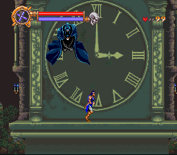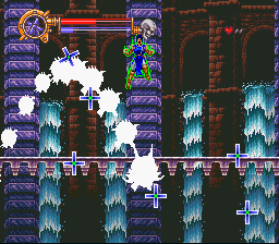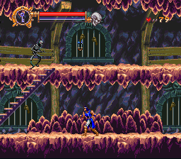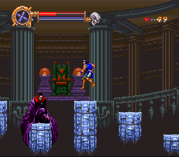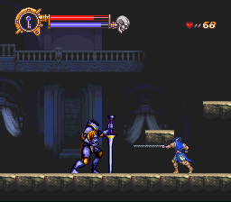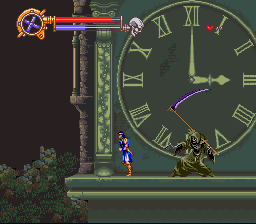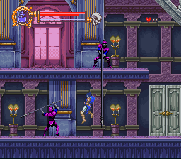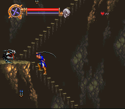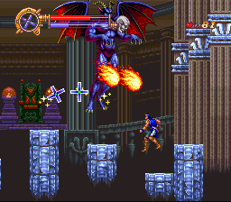 Je continue, parce qu'il faudrait être mad, ou très con (les deux même) pour en rester là. Les défauts ne s'atténuent pas, ils sont même rejoints de deux autres : des décors jolis au début mais finalement répétitifs (pourtant, j'aime l'art séquentiel) et un level-design à chier. Je sue à grosses gouttes. De panique, et aussi parce que le tout est servi par une difficulté absolument démente. Certains ennemis ont une allonge de folie, et les concepteurs ont abusé de l'effet "phase de plate-forme tendue avec des trucs qui vous font tomber de partout". A la longue, on se rend compte que Richter Belmont est presque atteint d'un léger syndrôme de golemmite, dont son ancêtre Simon avait fini par se débarrasser, qui est fort heureusement (oui, alleluia, des choses bonnes à prendre ! ) compensée par la possibilité de sauter depuis les escaliers, un salto arrière, un coup spécial avec l'arme secondaire et une option moonwalk. Niveau combat final c'est clair : Dracula est une pute vérolée qui vous en fera chier comme un Russe. Oui, Nes Pas est aussi le site des obédiences sexuelles de l'extrême.