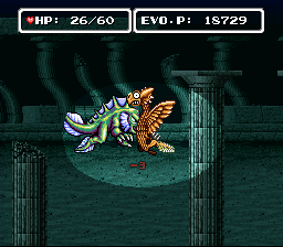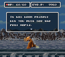 Et pourtant Virgile, vous savez quoi ? L'équilibre est tout de même maintenu. Alors oui, il y a de sévères manques et la construction des tableaux est totalement passée à l'as, mais ce qui prime au final, c'est bien l'expérience unique, le trip fait sous acide. Et elle est bien là, présente et toujours bien retranscrite. Il se dégage une atmosphère new age vraiment chouette, la touche d'Enix est bien là et on sent parfois comme un air d'ActRaiser ou d'Illusion of Time par exemple. EVO est un vrai jeu bien complet, qui remplit parfaitement son rôle d'ovni, et qui s'offre en plus le loisir d'être une aventure à géométrie variable, à refaire en privilégiant de nouvelles évolutions ou en exploitant les quelques secrets dissimulés.