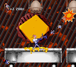 On pouvait reprocher au premier opus la longueur de ses niveaux. Ils paraissaient certes originaux au premier abord mais il fallait bien avouer qu'au bout de quelques minutes, perdu dans un dédale qui semblait sans fin, on s'emmerdait un peu pour être honnête. Les niveaux du second opus sont assez longs pour avoir le temps de s'imprégner de l'ambiance tout en étant assez courts pour éviter la lassitude. Jim se dirige avec aisance dans des niveaux aux multiples surprises et autres coins secrets. Car oui, le jeu vous réserve quelques surprises. Outre les gags toujours de très bons goûts comme les vaches explosives ou les bureaucrates sados masos, chaque niveau décèle des pépites de game design. Des bonus cachés, des missions différentes à chaque fois, gameplay renouvelé, des cheat codes foireux… Autant de moyens peu honnêtes trouvés par les développeurs pour vous empêcher de lâcher la manette. Et force est d'avouer que c'est bigrement réussi.