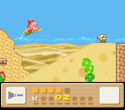 Quoi qu'il en soit, si vous avez déjà joué aux opus GB et NES, attendez-vous à trouver Kirby un poil plus pataud. Pas moins contrôlable hein, mais plus mou. En fait, ils ont même réglé la vitesse pour en faire ressortir de la nonchalance. Ils sont forts ces développeurs.