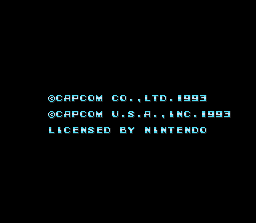 On commence, Capcom oblige, avec le petit jingle propre à la marque. Mais ... tiens, la police n'est pas la même ? (Je le remarque en comparant à mes souvenirs d'Aladdin, toujours sur SNES)